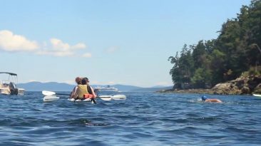 Never a dull moment on a great big swim. During Stage 2 of the Great Big Swim the Spirit Orcas swim from Patricia Bay to Swartz Bay and the BC Ferry...
